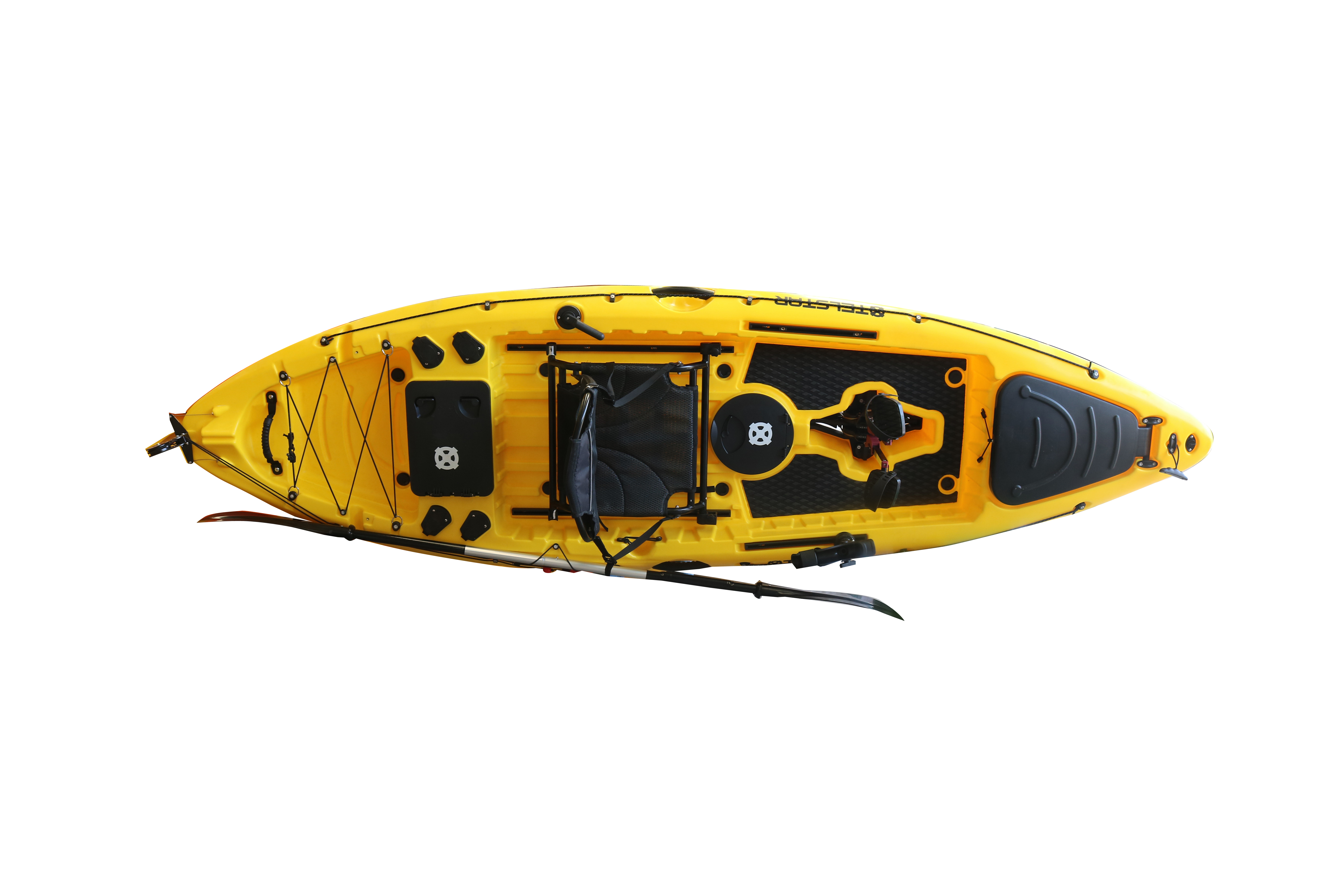 KOROT е универсален каяк, съчетаващ удобството на педална система за ефективно придвижване и прецизно управление чрез кормилна уредба. Подходящ както за риболов, така и за туристически преходи, моделът осигурява стабилност, комфорт и възможност за монтаж на аксесоари. Отличен избор за водачи на всякакви водоеми – от реки и езера до море. Изключително здрав. Педалната система от закалена стомана може лесно да се монтира и демонтира.