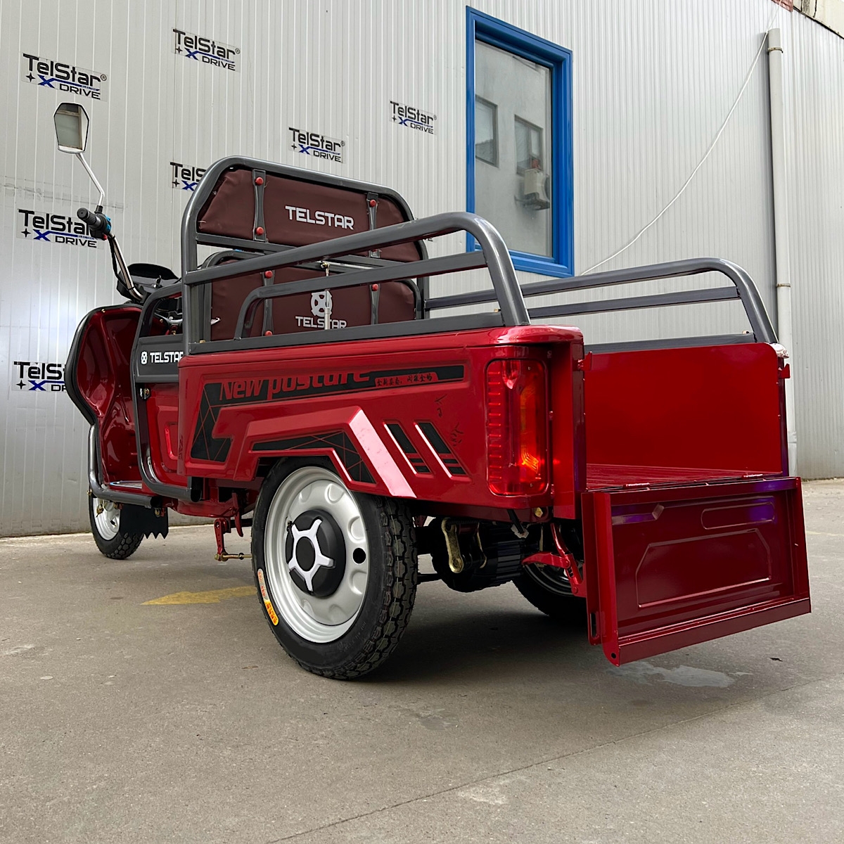 | Допълнителна информация | задно предаване, с диференциал подсилено предно окачване многолистови задни ресьори клаксон - новият LED икономичен фер с 15 светодиода - предна амортисьорна вилка LCD дисплей показващ скорост, заряд и волтаж на батерията, пробег, светлини пълна светлинна окомплектовка- преден фар, гарбарит, стопове, предни /задни мигачи странични светлоотразители тристранни канати за по- лесно товарене и разтоварване висок клирънс аларма и светлинна сигнализация ъгъл на изкачване- 25° спирачна система- кормилна спирачка, крачна спирачка и ръчна спирачка за паркиране външни размери на карго платформата: 1100x860 |