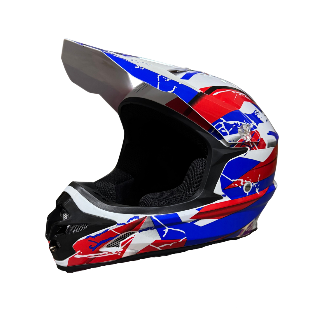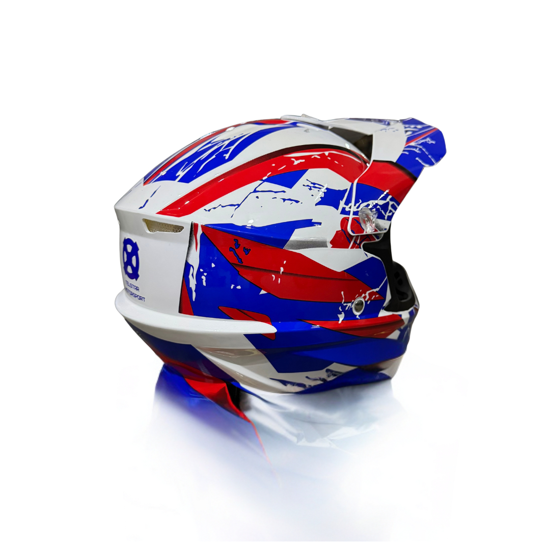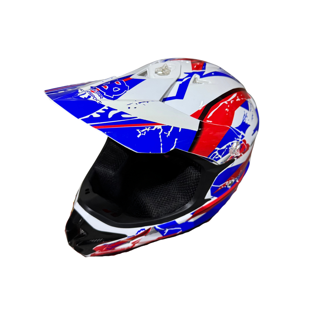 Детската каска за мотокрос и ATV на TelStar, е идеалният избор за малки любители на офроуд приключения. С универсален размер и регулируема вътрешна подплата, тя осигурява комфортно и сигурно прилягане за деца на различна възраст. Изработена от високоустойчиви и леки материали, каската предлага отлична защита при каране на кросови мотори, ATV (четириколки) и други офроуд превозни средства.